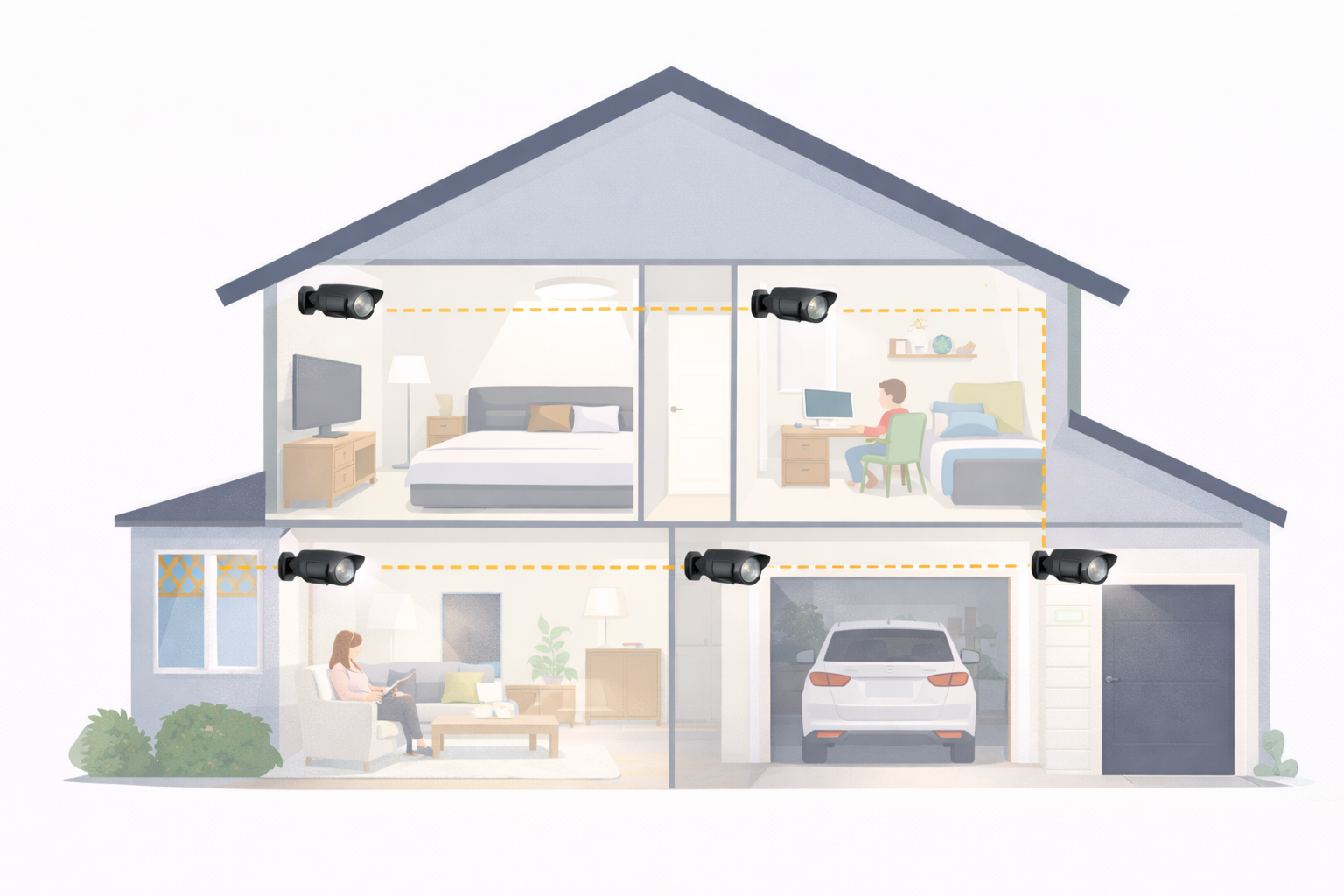 📏 Un sistem bine gândit acoperă complet casa, fără „unghiuri moarte”.