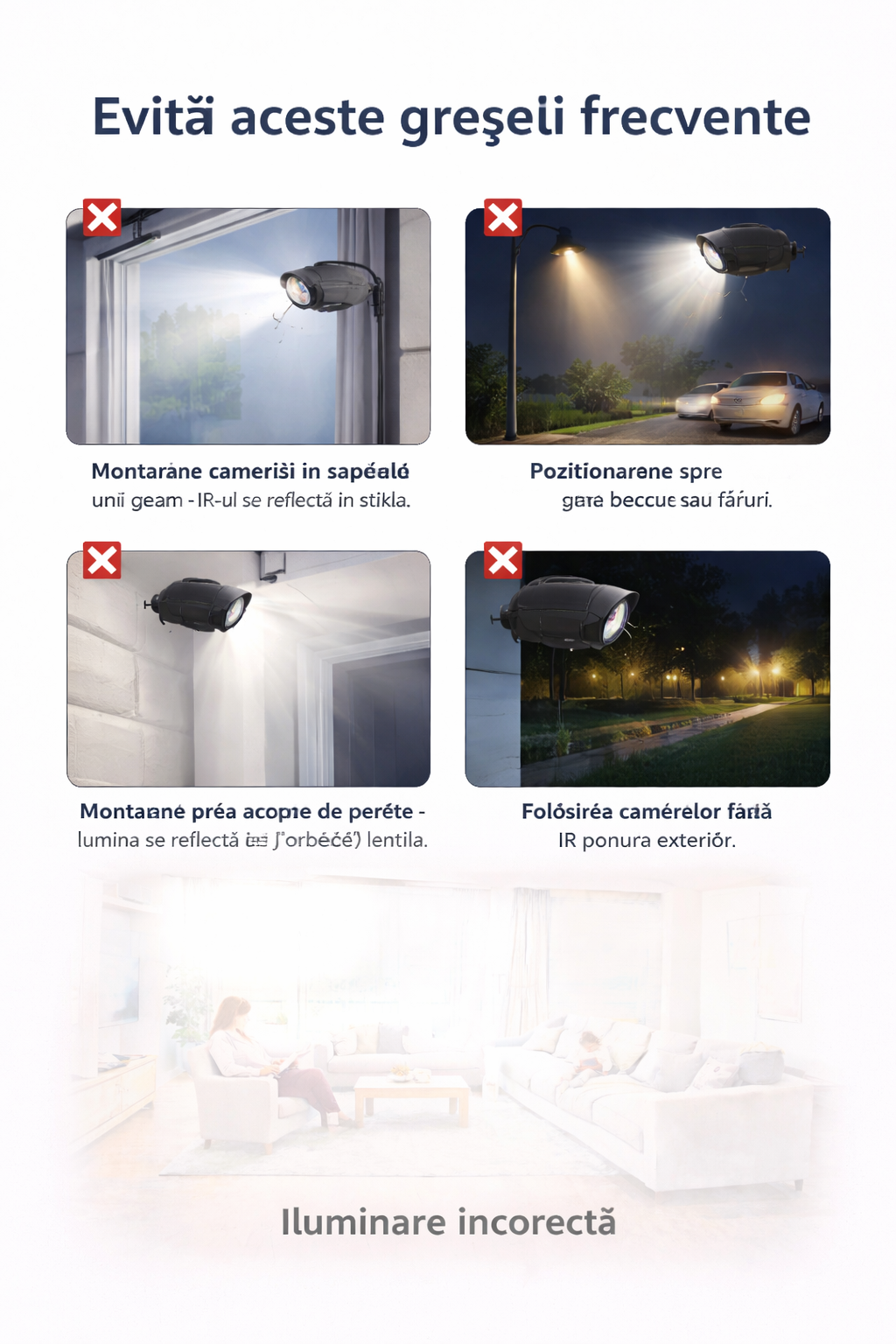 ❌ Folosirea camerelor fără IR pentru exterior.
