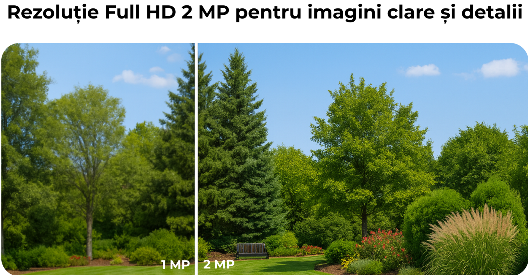 2 megapixeli (1920 × 1080) , proiectată pentru supravegherea eficientă a zonelor exterioare, oferind imagini de culoare 24/7 chiar și în condițiile foarte reduse. Lentila fixă ​​de 2.8 mm asigură un unghi larg de vizualizare de aproximativ 103°, ideal pentru monitorizarea curților, intrărilor, aleilor, parcărilor sau spațiilor comerciale.