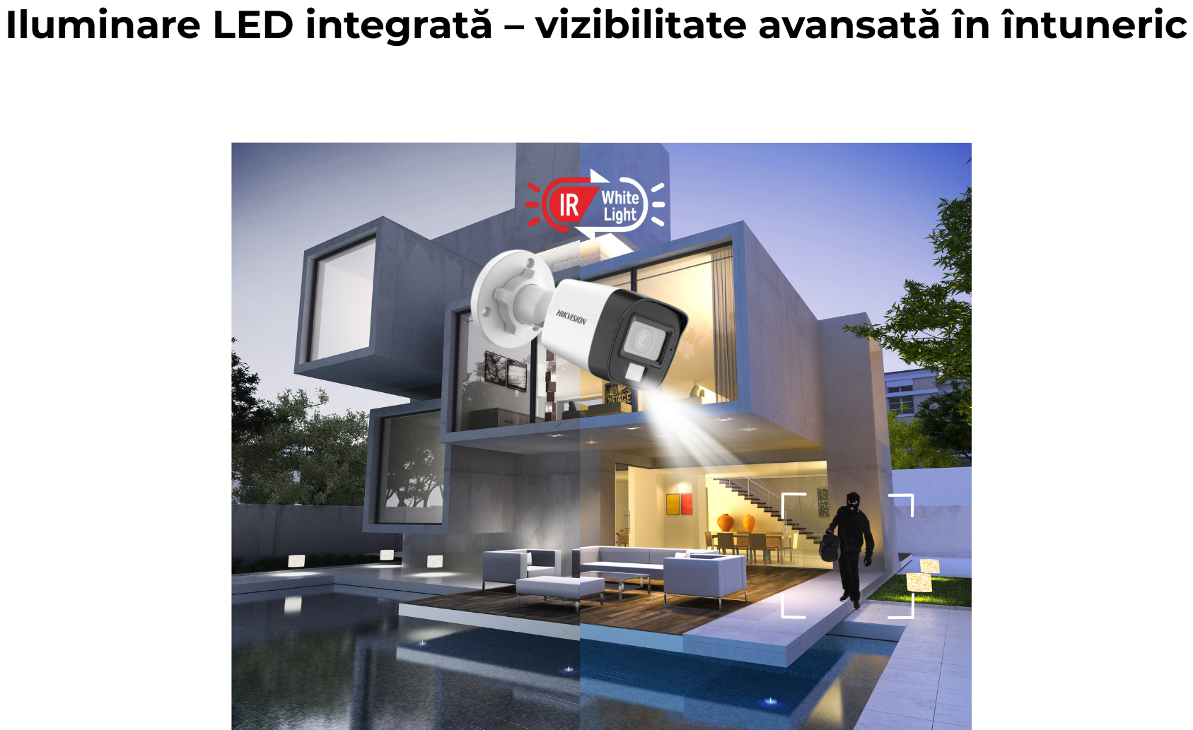 DS-2CE72HFT-F28 este compatibilă cu toate standardele analogice moderne — HD-TVI, AHD, CVI și CVBS — permițând integrarea rapidă atât în ​​sisteme existente, cât și în instalații noi, fără a necesita schimbarea infrastructurii. Astfel, camera poate fi folosită ca upgrade pentru sisteme analogice mai vechi, oferind o calitate superioară a imaginii.