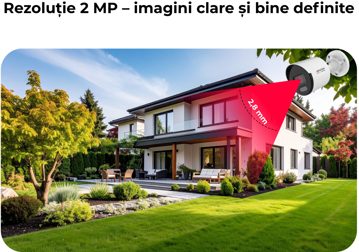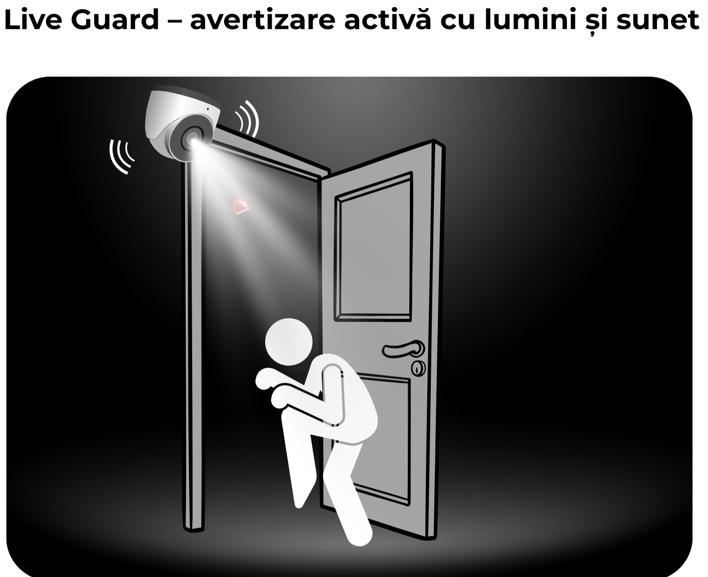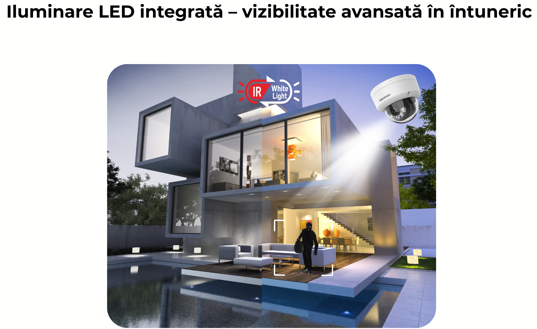 Functii AI: ColorVu, alarma stroboscopica, Detectie miscare, Detectie om/masina