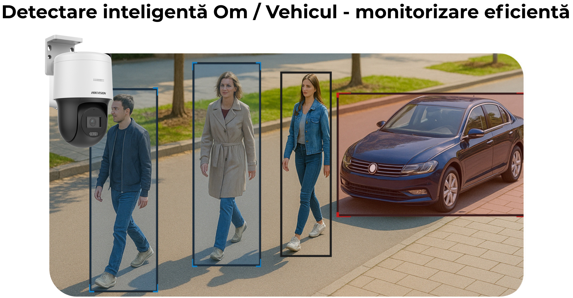 | Analiza video (VCA) | Detectie miscare 2.0, clasificare tinte om/masina (4 canale), protectie perimetru |